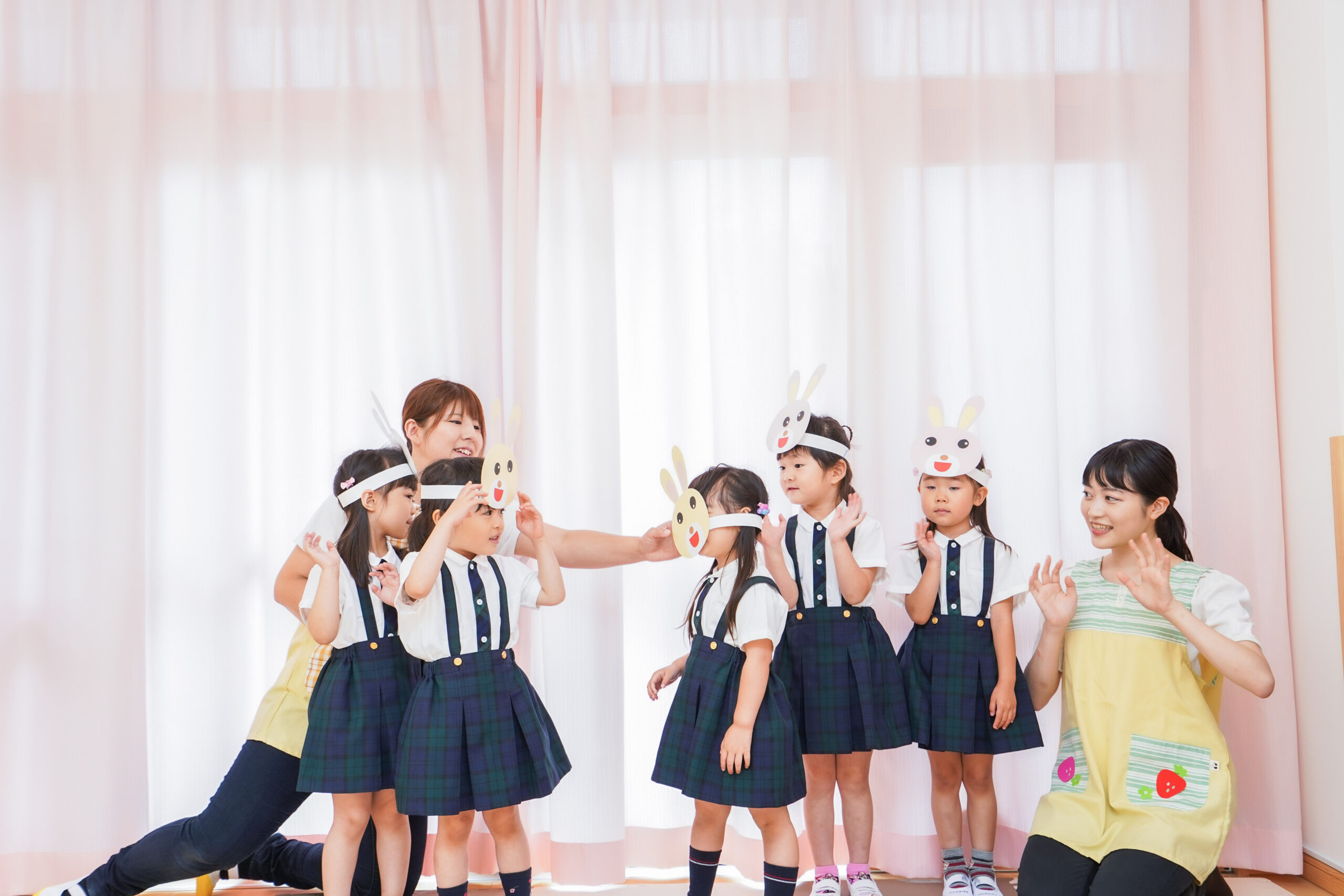 発表会の練習をする子どもたちと保育士